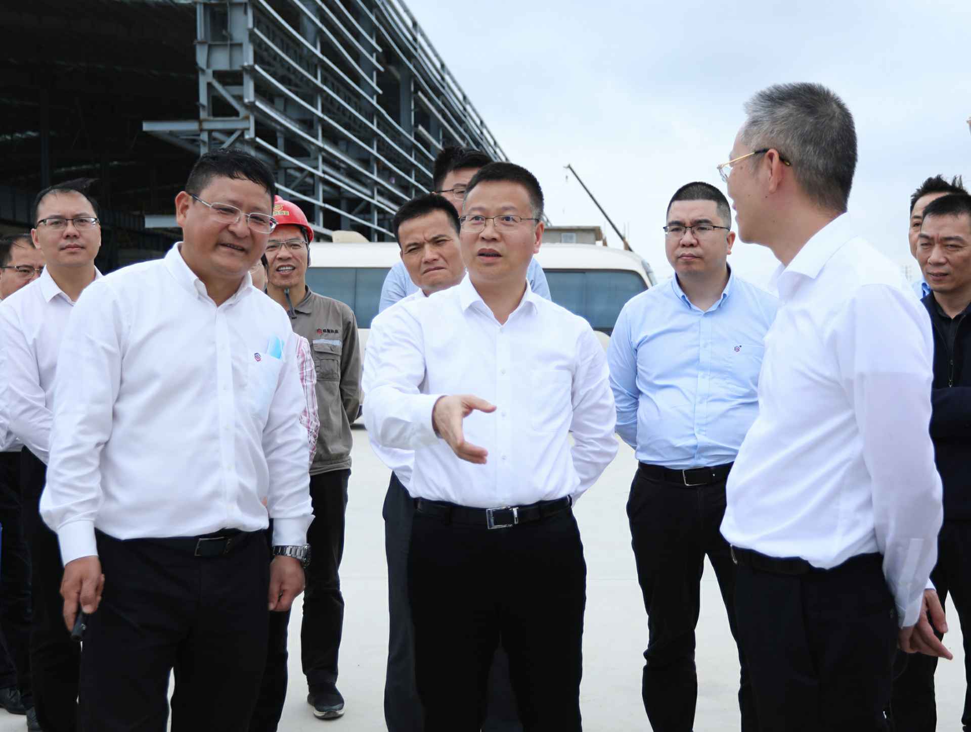 4月12日下午,市委书记谭丕创深入港口区,就推进重大项目建设进行专题调研。图为谭丕创在AG九游会·(官方网站)-首页下游产业链——高强度耐磨新材料项目部现场调研。
